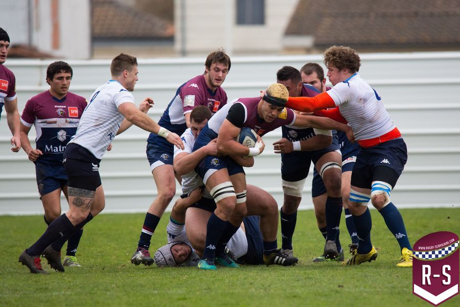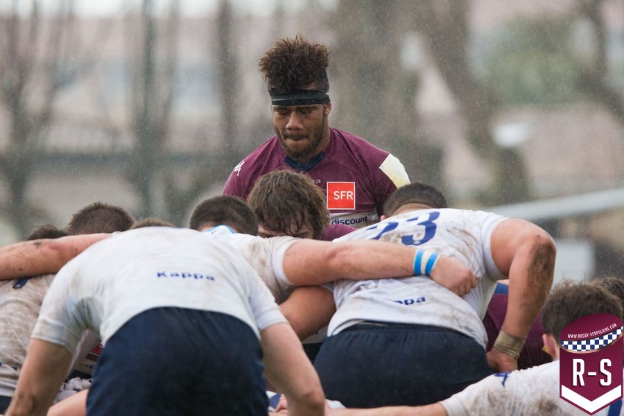 Cet après-midi, nos jeunes espoirs, 3ème, dans le cadre de la 18ème journée du championnat espoir, affrontaient des Montpelliérains en difficulté au classement (13ème), une équipe chez qui ils étaient allés s’imposer au match aller. Une équipe revancharde arrivait donc de l’Hérault. Du côté de l’UBB, Joseph Edwards, en 3ème ligne, Metuisela Talebula, au centre et Darly Domvo à l’arrière venaient renforcer les rangs des espoirs pour retrouver le rythme de la compétition. Grâce à Loïc Le Naour (vous pouvez retrouver son site ICI), qui a bravé les conditions climatiques difficiles, nous vous proposons des photos de ce match.