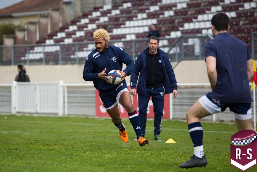 Tout d’abord nous voici quelques photos de l’échauffement de nos jeunes. On peut voir que le jeune pilier originaire de Wallis et Futuna, Talau Molaga, était présent dans le groupe.