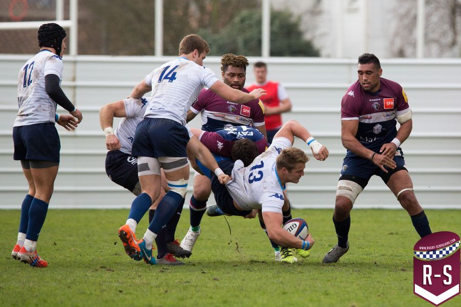 Bien entrés dans le match, nos jeunes avaient déjà creusé l’écart à la mi-temps. Ils menaient 25-3, grâce entre autres à un essai de Darly Domvo, son 3ème en 3 matchs avec les espoirs. Voici les photos de la première mi-temps.