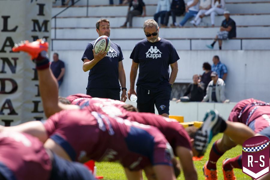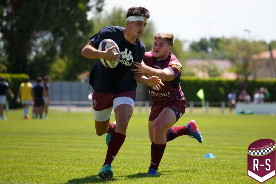 Dimanche après-midi, sous le soleil estival de Mimizan, les espoirs de l’UBB jouaient leur match de barrage contre l’Aviron Bayonnais. C’est une équipe diminué par des blessures et l’absence de 3 joueurs importants en stage avec l’équipe de France U20 (Matthieu Jalibert, Pablo Uberti et Geoffrey Cros) qui se présentait. La composition était la suivante : Dominici, Brute de Remur, Tabidze, Labouteley, Vermont, Dicharry, Kamikamica, Tskhadadze, Doubrère, Chalmers, Tuwai, Waqaliva, Juniver , Pilati, Etcheverry. Grâce à notre photographe Loïc, nous vous proposons quelques photos de la rencontre, en commençant par l’échauffement.