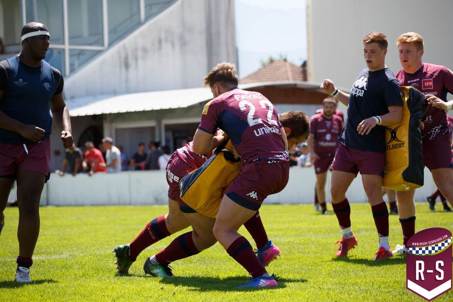 La seconde mi-temps allait se révéler difficile pour l’UBB. En effet, nos espoirs, qui se retrouvaient pendant 10 minutes en infériorité numérique suite au carton jaune du talonneur Gauthier Bruté de Rémur, n’allait pas inscrire le moindre point, et encaisser 2 pénalités, 1 drop et un nouvel essai pour s’incliner finalement 6-32. Voici les photos de la seconde mi-temps.