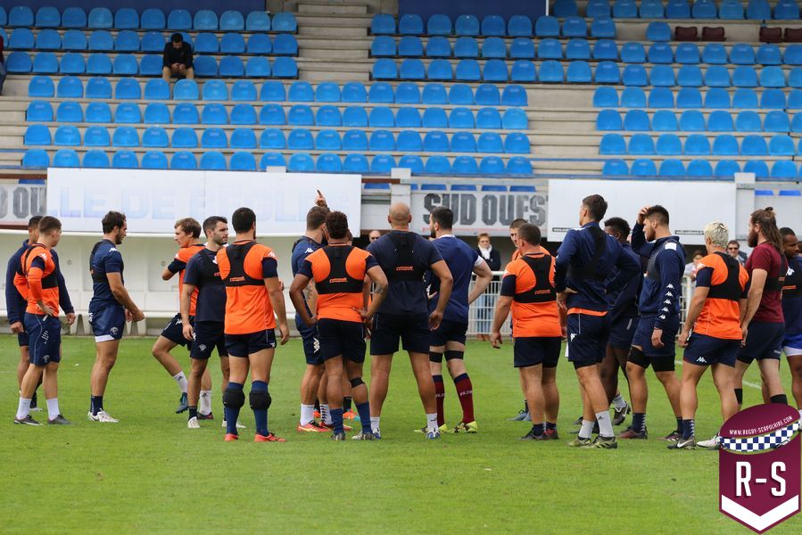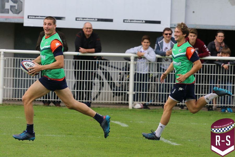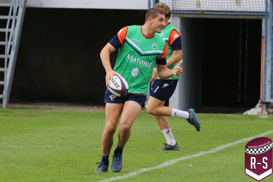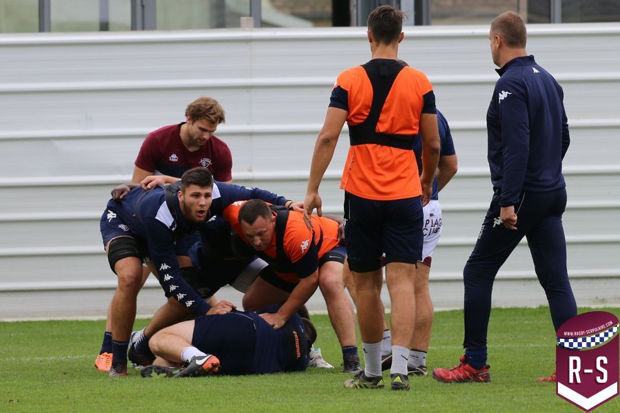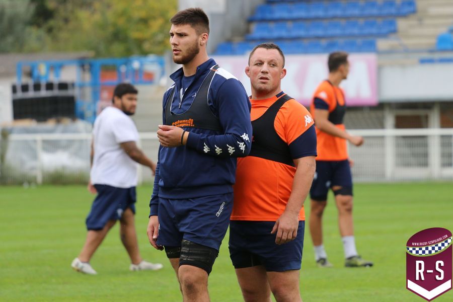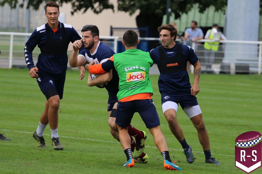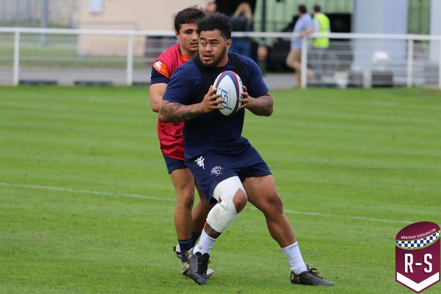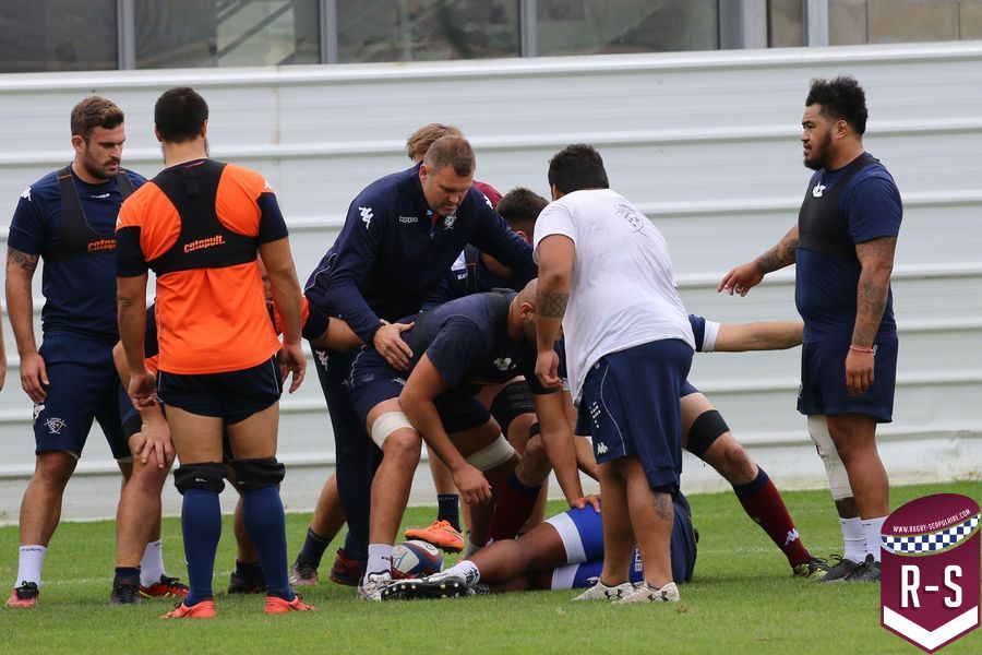 Nous étions présents à la séance d’entraînement du jour pour voir le début de la préparation du déplacement au Racing 92. Les joueurs étaient séparés en deux groupes. L’un était avec l’entraîneur des avants, Jeremy Davidson et l’autre avec Rory Teague, réalisait une opposition sur petit terrain, où le but était de marquer rapidement un essai. Les joueurs devaient s’arrêter dès qu’ils étaient touchés. Voici quelques photos de cet atelier.