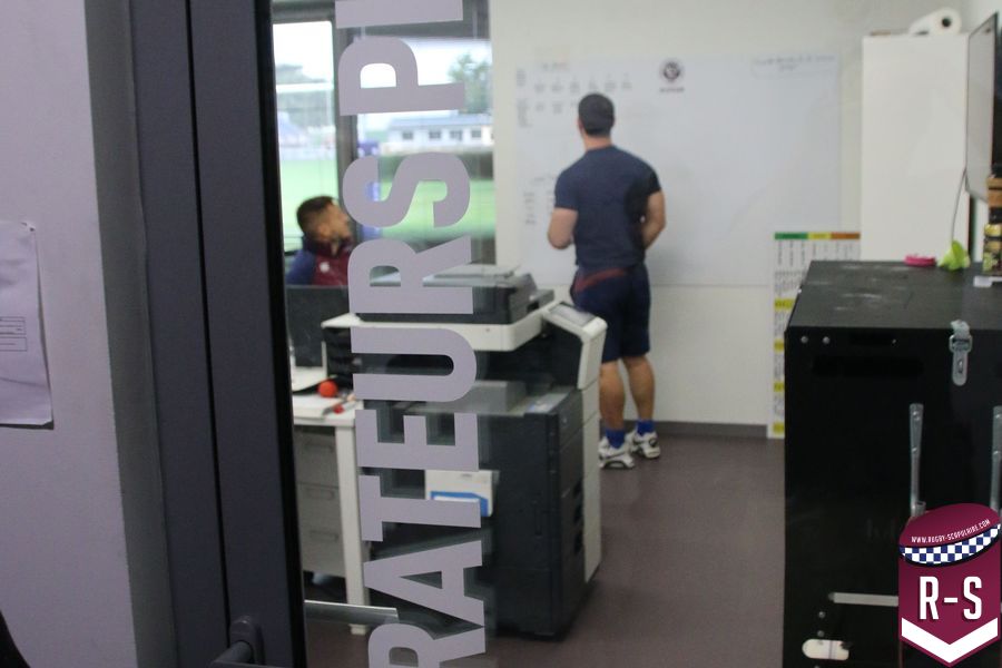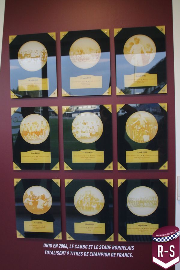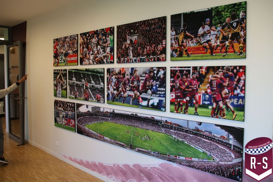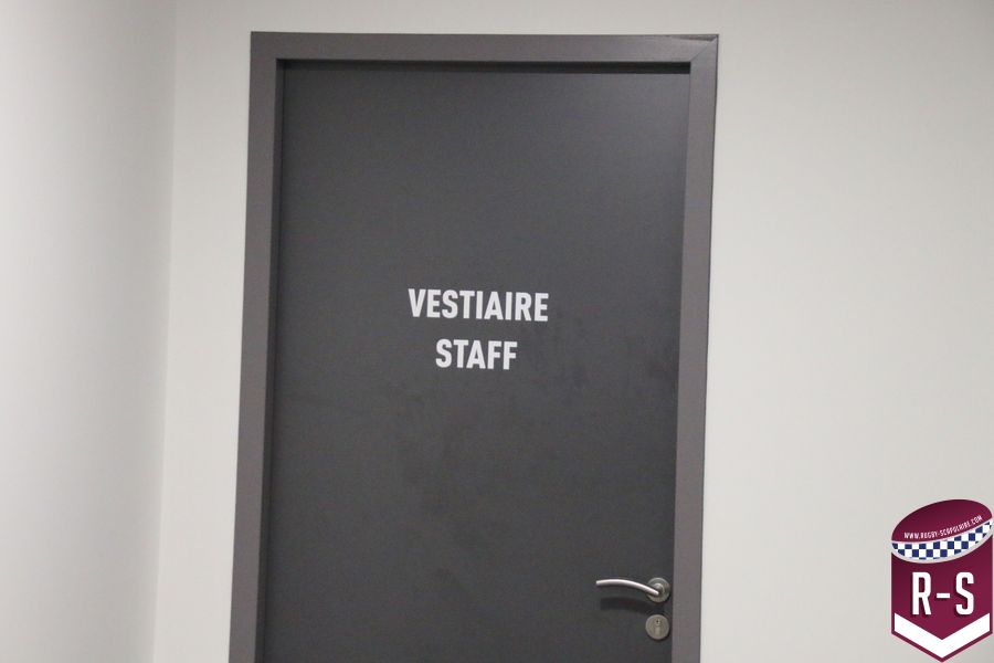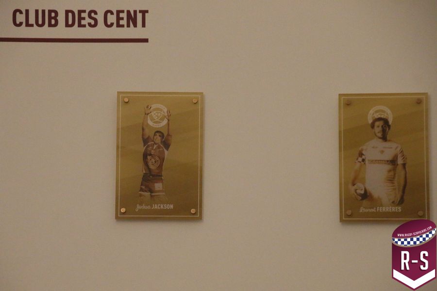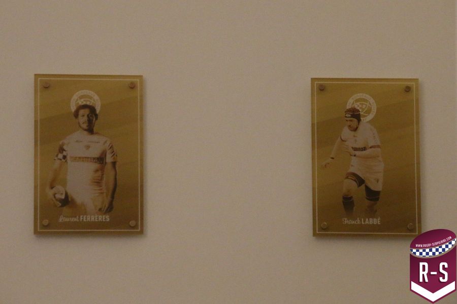 Une fois passé la porte d’entrée, avec une plaque rappelant l’inauguration récente des lieux, nous tombons sur une série de photos retraçant l’histoire du club. Dans l’escalier montant à l’étage où se trouvent les bureaux du personnel administratifs, on peut aussi observer le “Mur des Cents” commémorant les joueurs ayant dépassés les 100 matchs sous le maillot de l’UBB. Ce lieu ne se veut donc pas seulement un lieu d’entraînement, mais aussi un lieu de mémoire, rappelant aux joueurs, qu’ils rejoignent un club chargé d’histoire.