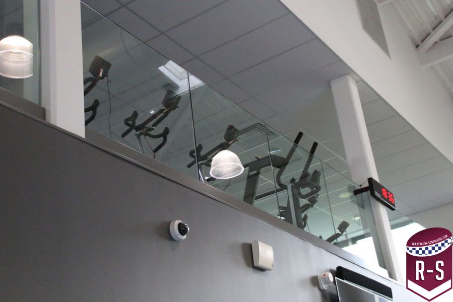 Après un long couloir donnant sur les vestiaires ainsi que différentes salles comme la cryothérapie ou le bureau de l’ostéopathe, des médecins et des kinés. Nous arrivons dans la partie principale du bâtiment, la salle d’entraînement. Nous pouvons observer des machines de musculations derniers cris, ainsi qu’une piste de course. Sur une mezzanine à l’étage, se trouve un espace dédié au cardio.