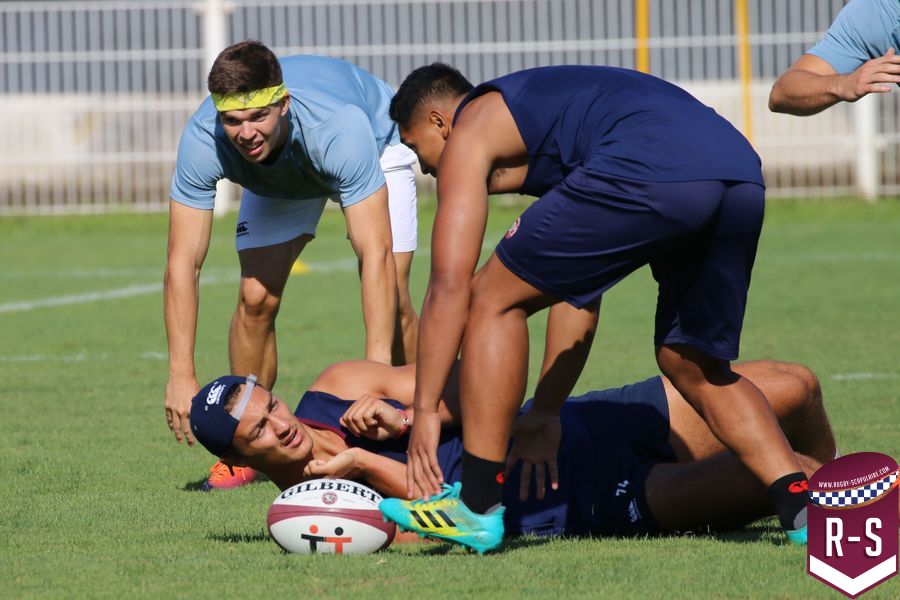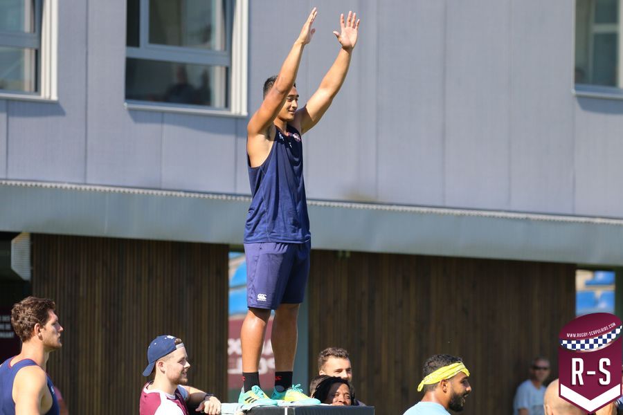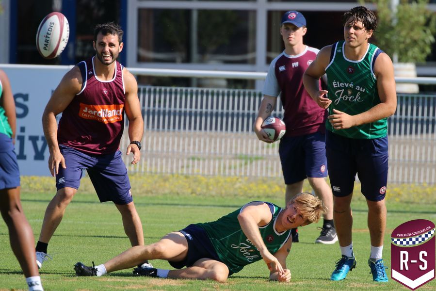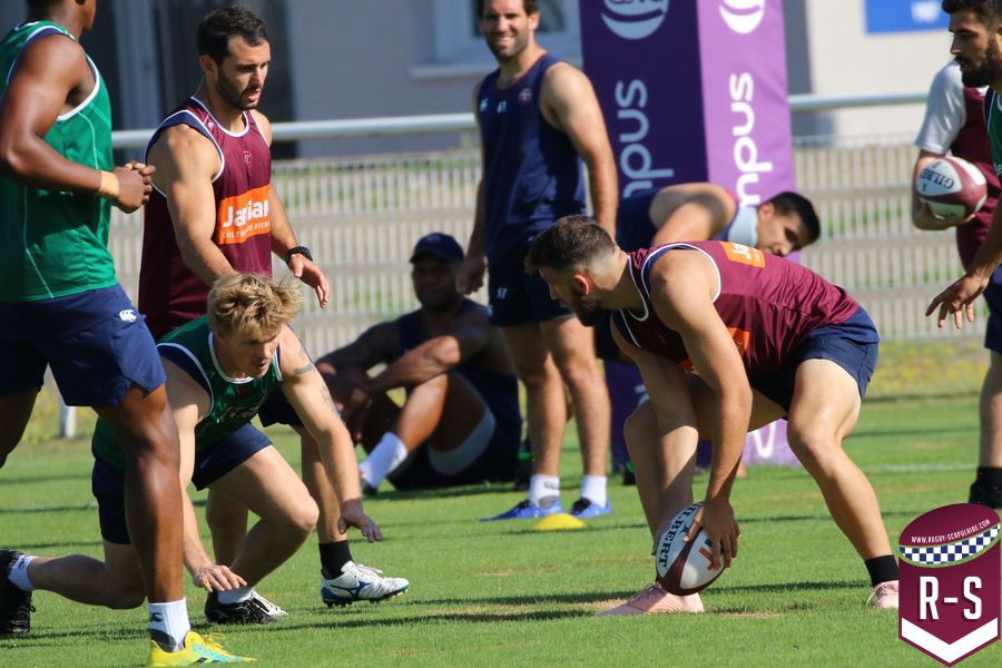 Ce samedi matin, sous le beau soleil du Stade André Moga, nos joueurs se retrouvaient pour la seconde journée des Bacchus, sorte de compétition d’avant-saison réalisée par le staff de Christophe Urios. Nos joueurs étaient séparés en quatre équipes, les Grappetous, les Cosmopolitains, les Pupicus et les GAGG (Gladiateurs à Grosses Grappes). Après une première étape sur le bassin, au Cap Ferret, remporté par les Grappetous de Nans Ducuing et Matthieu Jalibert, c’était ce coup-ci les 12 travaux de Bacchus qui attendaient nos joueurs, qui ont été confrontés à une série d’épreuves mêlant force, précision, esprit d’équipe, et adresse…
