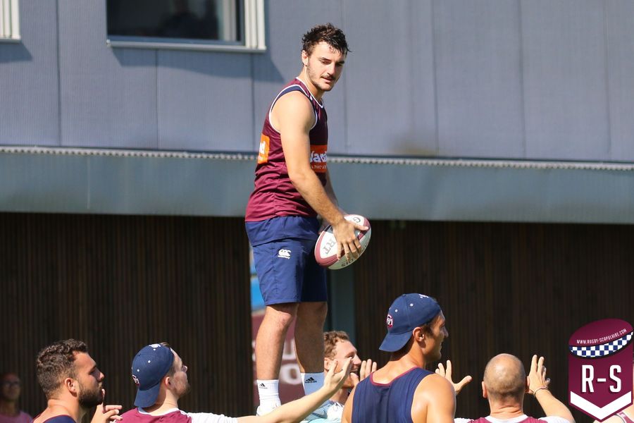 L’épreuve suivante, consistait pour certains joueurs de chaque équipe, à effectuer des lancers en touche, qui devait être rattrapés par un demi de mêlée placé en hauteur. Certains se montraient plus habiles que d’autres dans cet exercice.