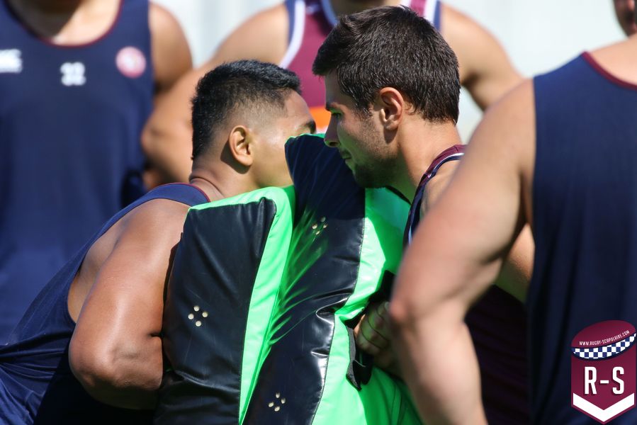 Les joueurs ont par exemple dû réaliser un relais en portant à deux un poids de musculation. Les grimaces observées sur le visages de nos joueurs laissaient présager de la difficulté de la tâche.