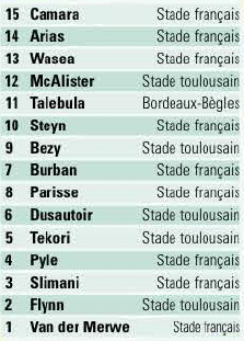 Cette semaine le XV de la semaine du Midi Olympique est basé sur les deux matchs de barrages du Top 14 et sur le barrage européen de l’UBB. Un seul joueur de l’UBB figure dans ce XV. Il s’agit de Metuisela Talebula qui s’est distingué en inscrivant un doublé ainsi qu’en réalisant une très belle prestation défensive.