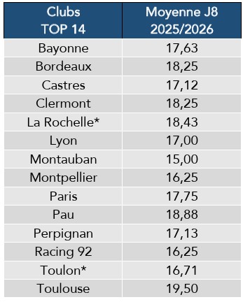 L’UBB quatrième moyenne de JIFF de Top 14