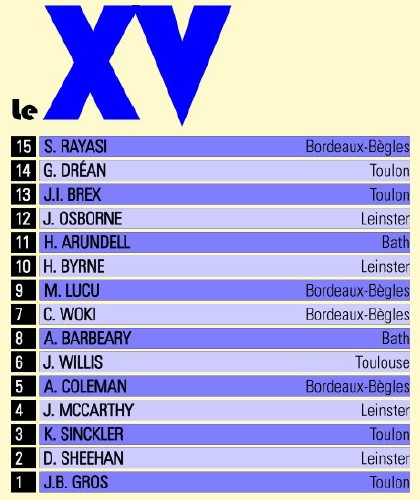 A noter que l’autre demi-finaliste Français possède aussi 4 de ses joueurs dans le XV des quarts de finale. Le RC Toulon place 4 protagonistes dans la liste.