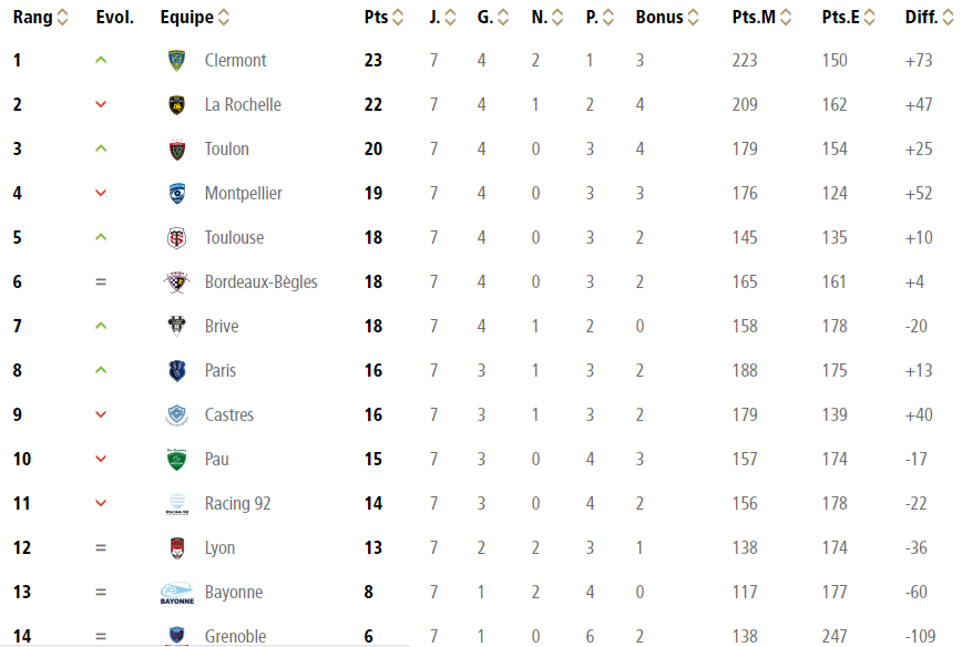 [J7] L’UBB pointe à la 6ème place du Top 14
