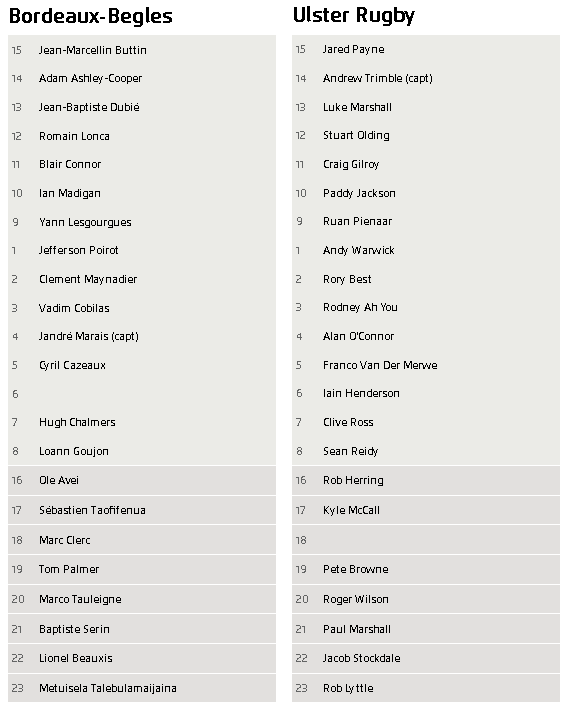 C’est à n’y rien comprendre. Traditionnellement, seul le groupe est annoncé deux jours avant la rencontre, comme l’a fait l’UBB en début d’après-midi. Seulement, l’EPCR a mis en ligne les compositions des deux équipes alors qu’elles n’étaient attendues que demain (voir ICI). L’Union Bordeaux-Bègles a donc transmis officiellement les titulaires à l’exception d’un seul joueur, celui qui évoluera au poste de numéro 6. Les compos officielles des deux équipes ci-dessous.