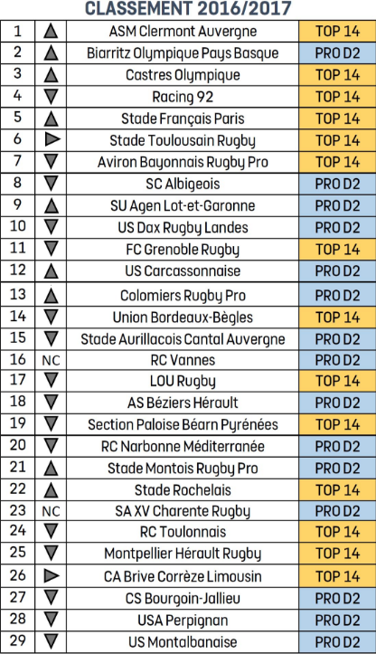 L’UBB 14ème pelouse de Top 14 et Pro D2