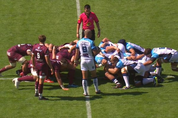 Konstantine Mikautadze touché au bras sortait rapidement du terrain. À la 6ème minute, Baptiste Serin ouvrait le score sur pénalité (3-0). Il fallait ensuite attendre la 18ème minute pour voir Baptiste Serin creuser l’écart. À la 22ème minute, Ruan Piennar loupait une pénalité. À la 35ème minute, se mettant à la faute sur une action de Semi Radradra, Benjamin Fall laissait ses coéquipiers à 14. Juste avant la mi-temps, Ruan Piennar avait une nouvelle occasion d’ouvrir le score qu’il convertissait (6-3).
