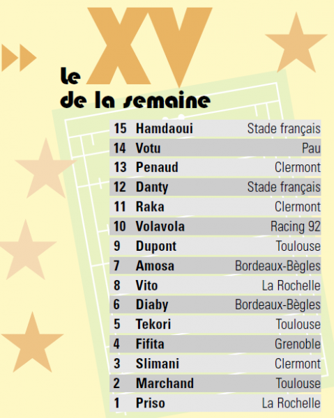 Deux joueurs de l’UBB dans le XV de la semaine du Midi Olympique