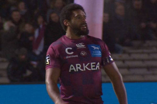 A la 10ème, Ole Avei prenait un carton rouge pour plaquage à la tête sur Jean-Baptiste Dubié qui sortait sur civière. Il était remplacé par George Tilsley. Baptiste Serin ouvrait le score sur pénalité (3-0). À la 18ème, George Tilsley aplatissait dans l’en-but. Baptiste Serin transformait (10-0). À la 24ème, Baptiste Serin passait une nouvelle pénalité (13-0). En toute fin de mi-temps, Baptiste Serin passait une nouvelle pénalité (16-0).
