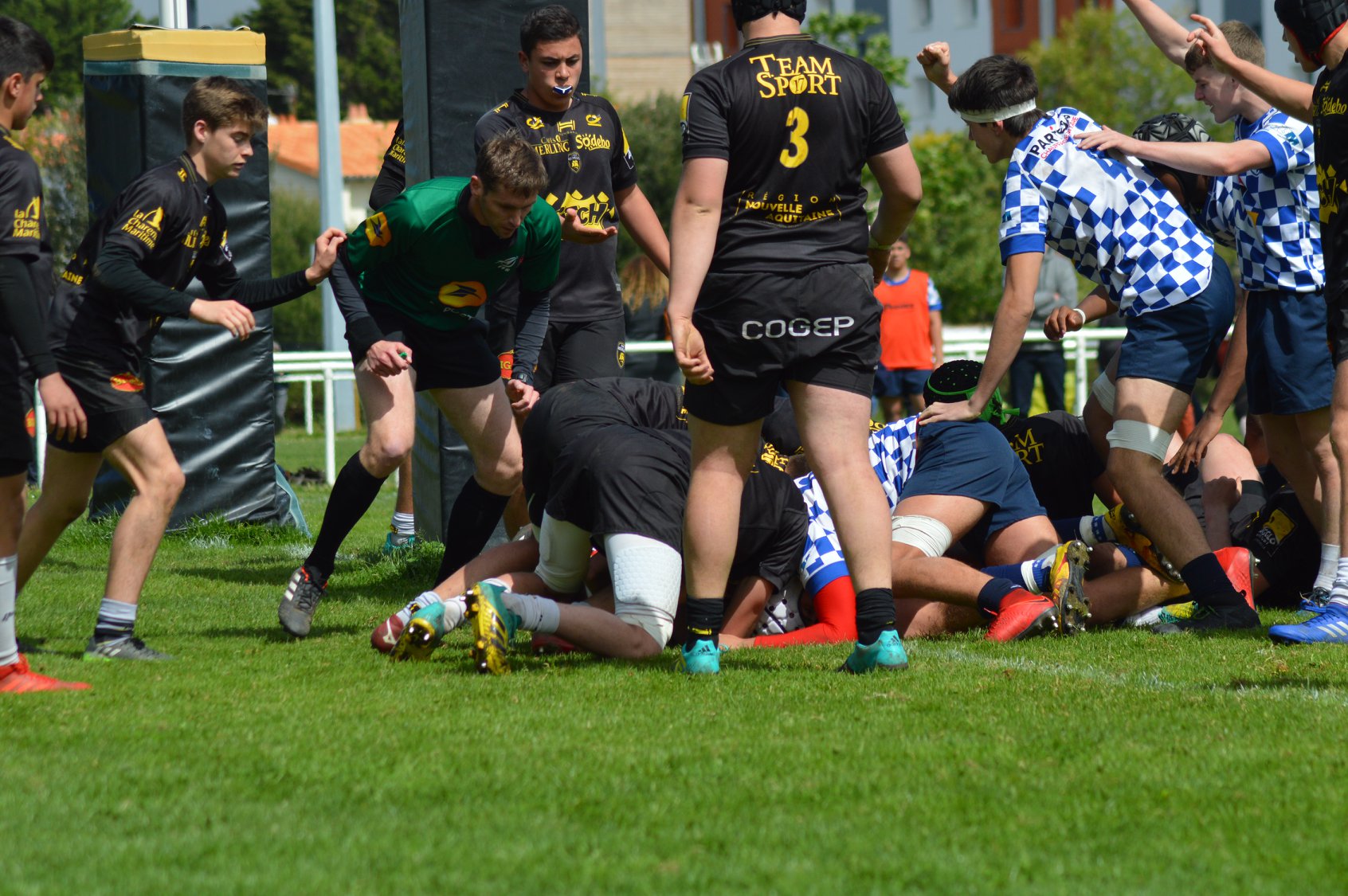Ce week-end, les deux équipes Cadets du CABBG se déplaçaient sur le terrain du Stade Rochelais pour la dernière journée de la phase qualificative de leur championnats. Les Cadets Alamercery terminent malheureusement sur une défaite 21-10. Ils terminent malgré tout à la première place de la poule 4 et au 3ème rang national. Ils sont donc qualifiés pour les huitièmes de finale. Les Cadets Gaudermen, pour leur part, se sont inclinés sur le score de 23-17. Seconds de leur poule derrière leurs adversaires du jour, ils terminent aussi au 5ème rang national et disputeront aussi les huitièmes de finale. Les deux rencontres auront lieu le dimanche 12 mai prochain et les adversaires et lieu seront communiqués ultérieurement.