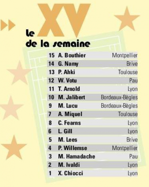 Deux joueurs de l’UBB dans le XV de la semaine du Midi Olympique