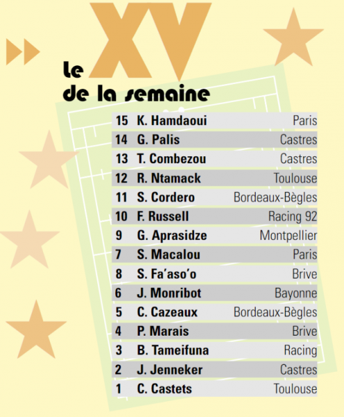 Deux joueurs de l’UBB dans le XV de la semaine du Midi Olmypique