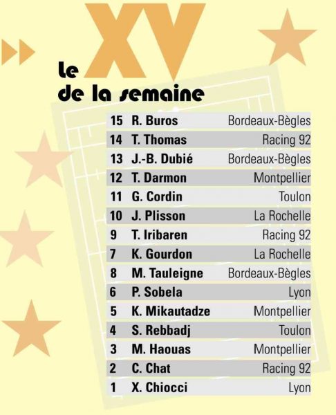 Trois joueurs de l’UBB dans le XV de la semaine du Midi Olympique