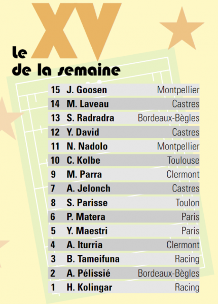Deux joueurs de l’UBB dans le XV de la semaine du Midi Olympique